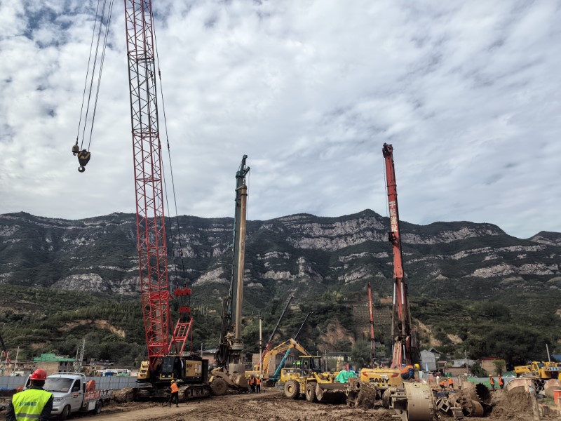 幸福橋設(shè)計為一座跨汾河大橋。項目部根據(jù)工程特點,將工程劃分為東西兩個工區(qū),分解關(guān)鍵節(jié)點工期目標(biāo),拆分成一般節(jié)點工期,再細(xì)化為每周、每日的進度計劃,層層細(xì)化,層層落實。同時,項目部安排道排、橋梁等專業(yè)施工隊,通過組織流水施工作業(yè),減少交叉作業(yè)影響,保證各工作面既滿負(fù)荷工作,又不互相干擾,加快施工進度。由于該工程施工范圍位于汾河兩岸,地質(zhì)情況比較復(fù)雜,地下水位高,地下土質(zhì)為卵石,開挖難度較大,施工人員先利用螺旋鉆機進行引孔,再采用“止水鋼板樁+拉森樁”的方式,起到有效防水和支護的效果。在進行橋梁基礎(chǔ)施工時,項目部采用正循環(huán)鉆孔灌注樁的施工工藝進行施工作業(yè),正循環(huán)鉆孔通過水泵壓送泥漿,從鉆桿柱中心進入孔底并返出,能夠快速完成鉆孔作業(yè),操作方式簡便,降低了施工難度?,進一步加快施工進度。針對工程重點難點,項目部還專門制定了《深基坑安全專項施工方案》和《高大模板支撐體系安全專項施工方案》,邀請專家進行論證,確保重點環(huán)節(jié)的施工質(zhì)量。