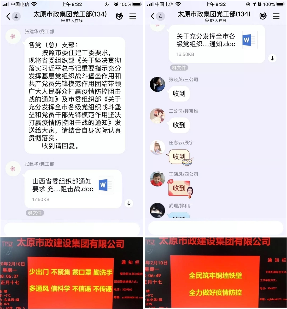 統(tǒng)一指揮,確保領(lǐng)導(dǎo)組織到位。為有效應(yīng)對新冠肺炎疫情,集團(tuán)公司迅速制定《太原市政建設(shè)集團(tuán)有限公司新型冠狀病毒防控應(yīng)急預(yù)案》,成立集團(tuán)公司新型冠狀病毒感染的肺炎疫情防控工作領(lǐng)導(dǎo)小組,以強(qiáng)有力的領(lǐng)導(dǎo)統(tǒng)籌協(xié)調(diào)推進(jìn)集團(tuán)公司疫情防范和處置工作。同時(shí),集團(tuán)公司制定《太原市政建設(shè)集團(tuán)有限公司關(guān)于做好春節(jié)后錯(cuò)峰返崗加強(qiáng)疫情防控的工作方案》,對職工復(fù)工前以及返程中個(gè)人防護(hù)、網(wǎng)上辦公等事項(xiàng)作出詳細(xì)安排和明確要求,保障集團(tuán)公司廣大職工身體健康和生產(chǎn)經(jīng)營穩(wěn)定有序。